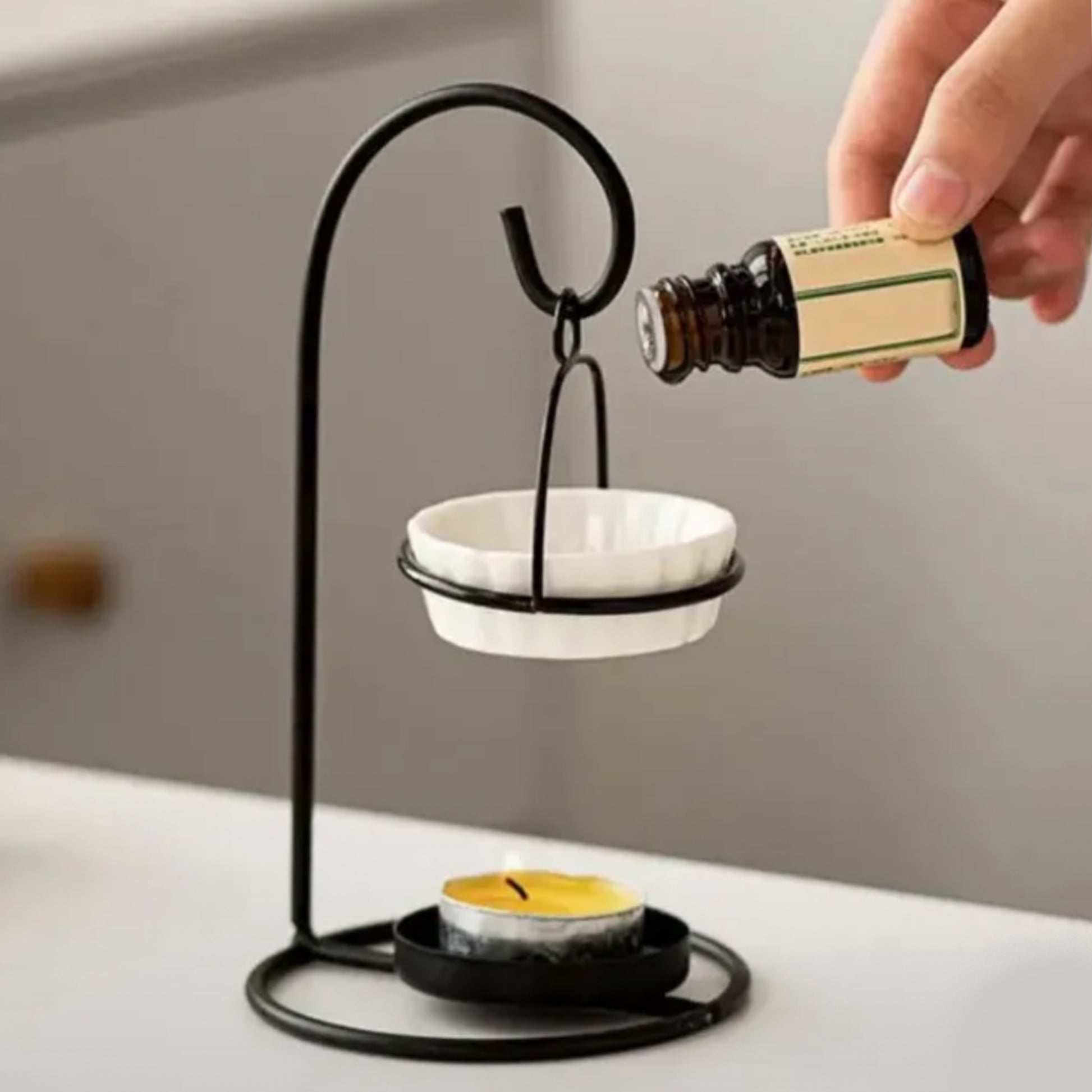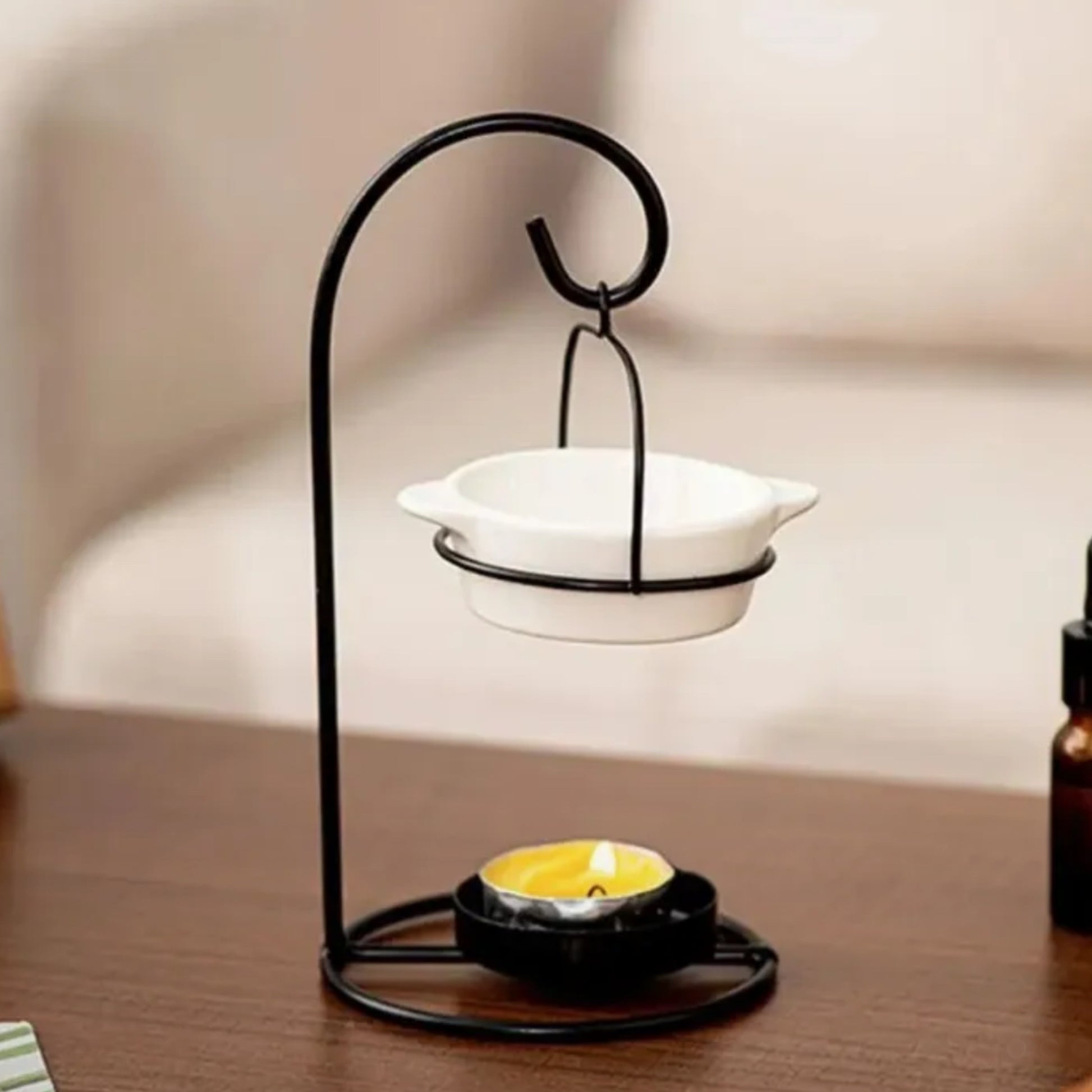En la parte superior se coloca la esencia aromática de tu preferencia mezclada con un poquito de agua y por dentro del difusor colocas una velita pequeña encendida (se les llama velas de té) y el calor hará que se propague el aroma por un tiempo prologando, toda tu estancia va a oler increíble